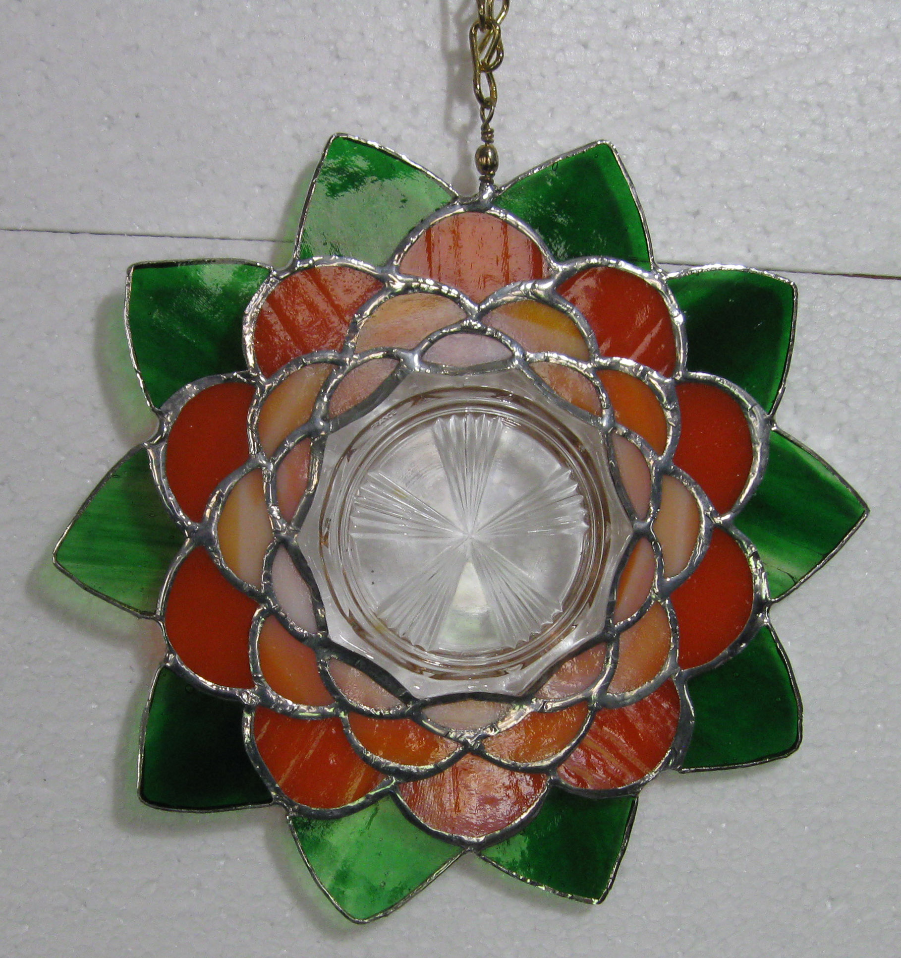 Orange and green lotus flower hung by a chain. $45.